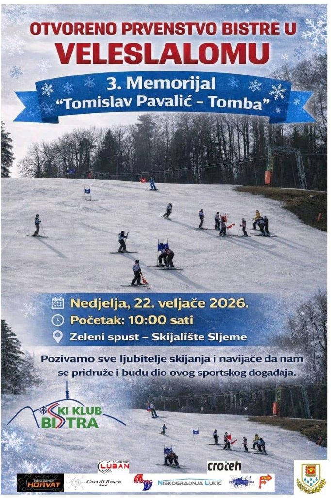 Sport Ski klub Bistra organizira rekreativnu utrku u veleslalomu – 3. Memorijal Tomislav Pavalić-Tomba Pročitaj više » 21. veljače 2026. 9:39