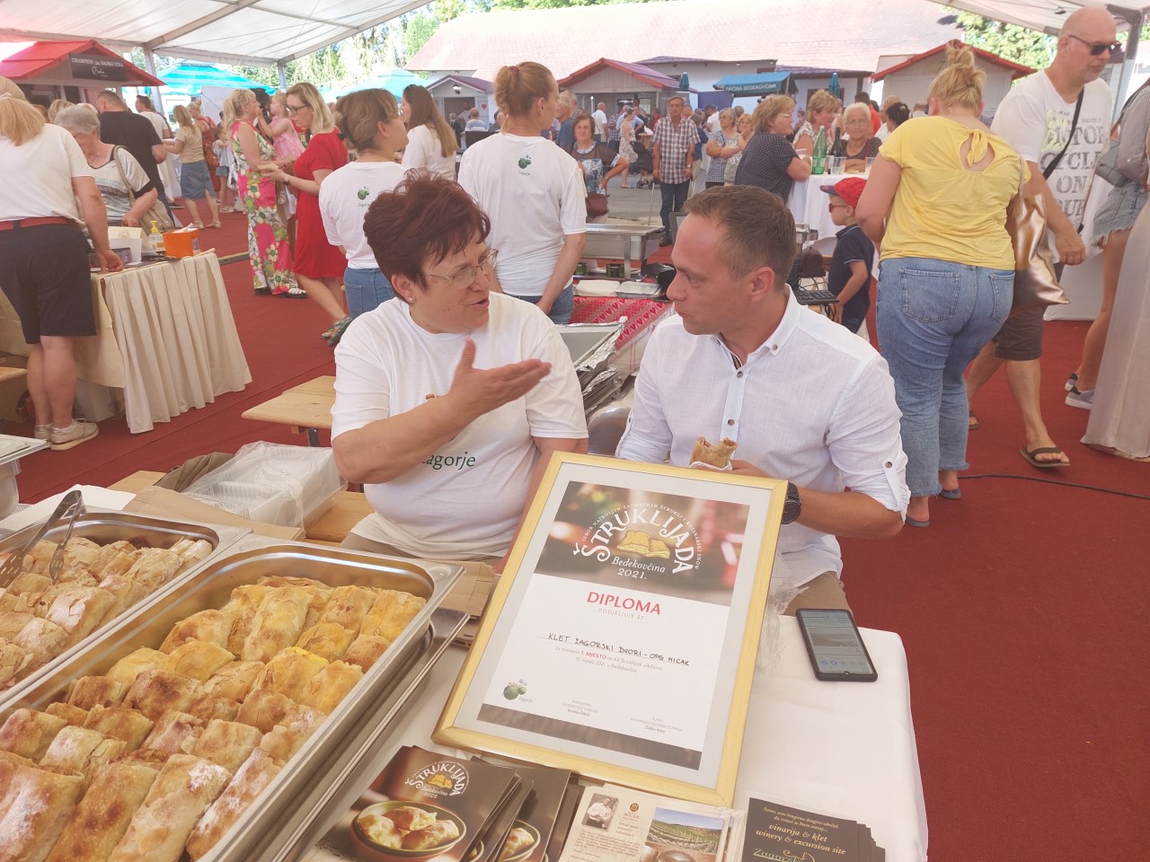 “Kod nas se štrukli proizvode na tradicijski način. Godišnje ispečemo preko 10 tisuća štrukla. Otvorili smo i radionicu štrukla, napravili jedan lijepi objekt, pomogla nam je Europa i Županija. To je novi modus za Mariju Bistricu, a onda i za cijelo Zagorje, da možemo ugostiti strance, a i domaće na radionici”, otkrio je Micak te prokomentirao kako se bore na više kolosijeka, pa su tako jučer osvojili i pet zlatnih medalja na sajmu vina.