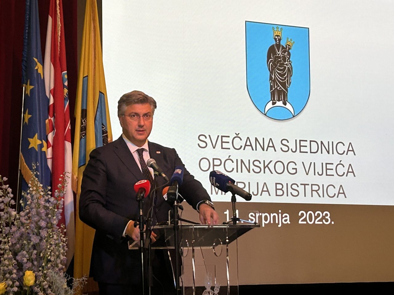 Na svečanu sjednicu Općinskog vijeća Marije Bistrice uz Dan općine i župe, održanoj večeras, stigao je i hrvatski premijer Andrej Plenković. On je čestitao čelnicima općine što su svoje vizije pretvorili u djela, te što su u zahtjevnim kriznim okolnostima zadnjih godina realizirali brojne projekte. Čestitao je i svetištu Majke Božje Bistričke što je perjanica korištenja Fonda solidarnosti za obnovu sakralne baštine. Rekao je i kako bi uskoro trebao biti raspisan natječaj za nastavak brze ceste do Marije Bistrice, a onda i dalje prema Popovcu. Također vjeruje da će biti ostvarena velika želja Marije Bistrice da dobije srednju školu. Dodao je da će za brojne projekte u cijelom Zagorju biti sredstava i u okviru Projekta Sjever.
