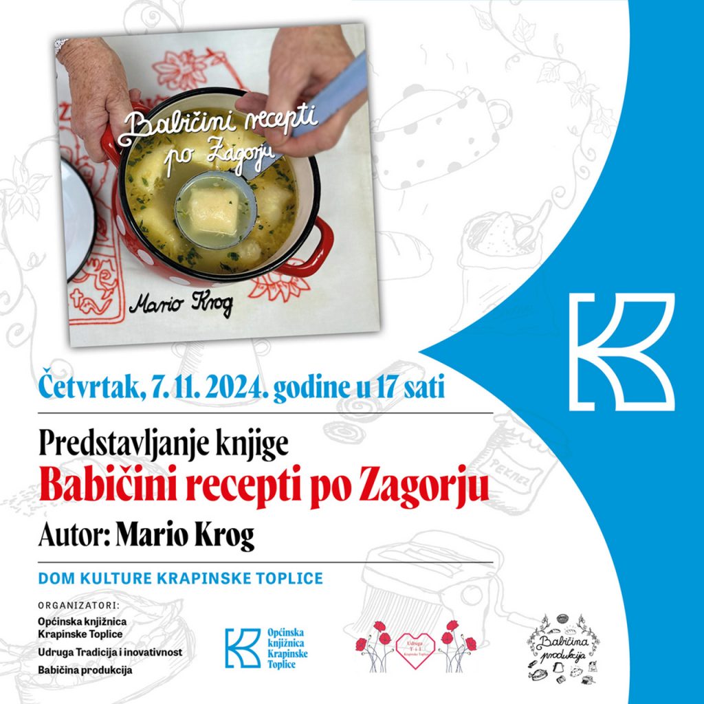 Vijesti Babičini recepti predstavljaju se u Krapinskim Toplicama Pročitaj više » 7. studenoga 2024. 10:58