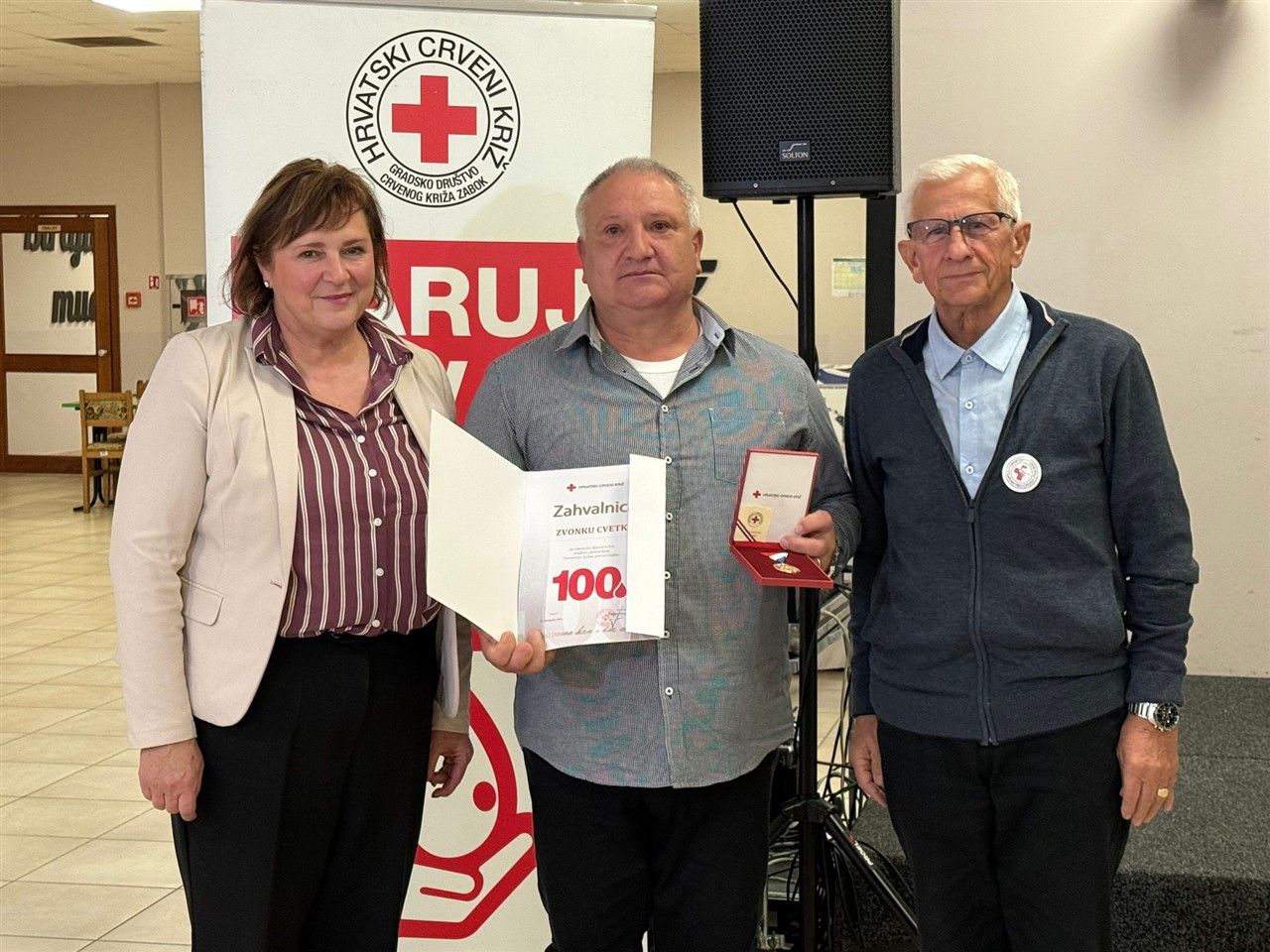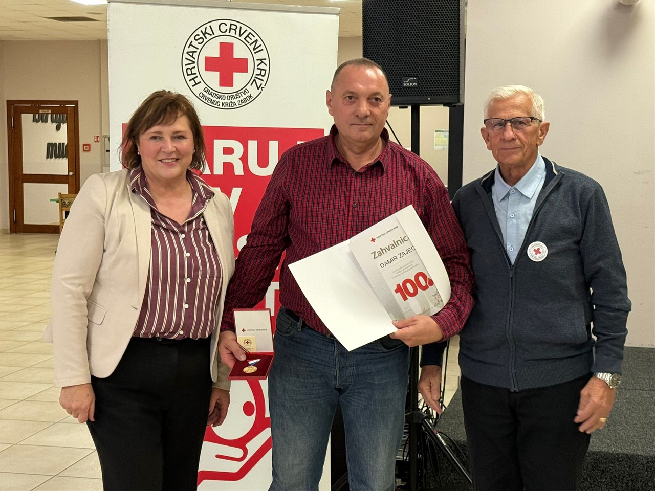 Prigodnom svečanošću večeras je u Zaboku u Restoranu KTC-a tradicionalno obilježen Dan dobrovoljnih davatelja krvi. Čak 113 darivatelja – jubilaraca među kojima i 21 darivatelj sa 100 darivanja, trojica sa 125 te jedna žena sa 75 puta darovanom krvi, primili su prigodna priznanja. Kako je u prigodnom govoru istaknuo Bojan Bjelja, ravnatelj županijskog Crvenog križa, Krapinsko-zagorska županija je na nivou Hrvatske i dalje u samom vrhu po broju darivatelja krvi.